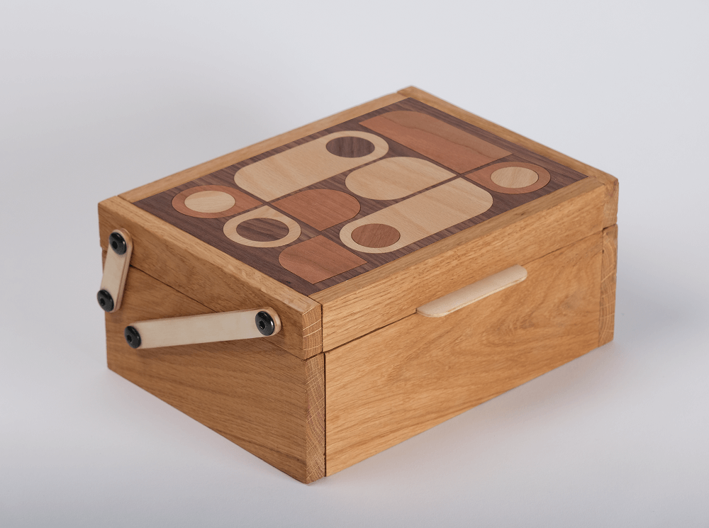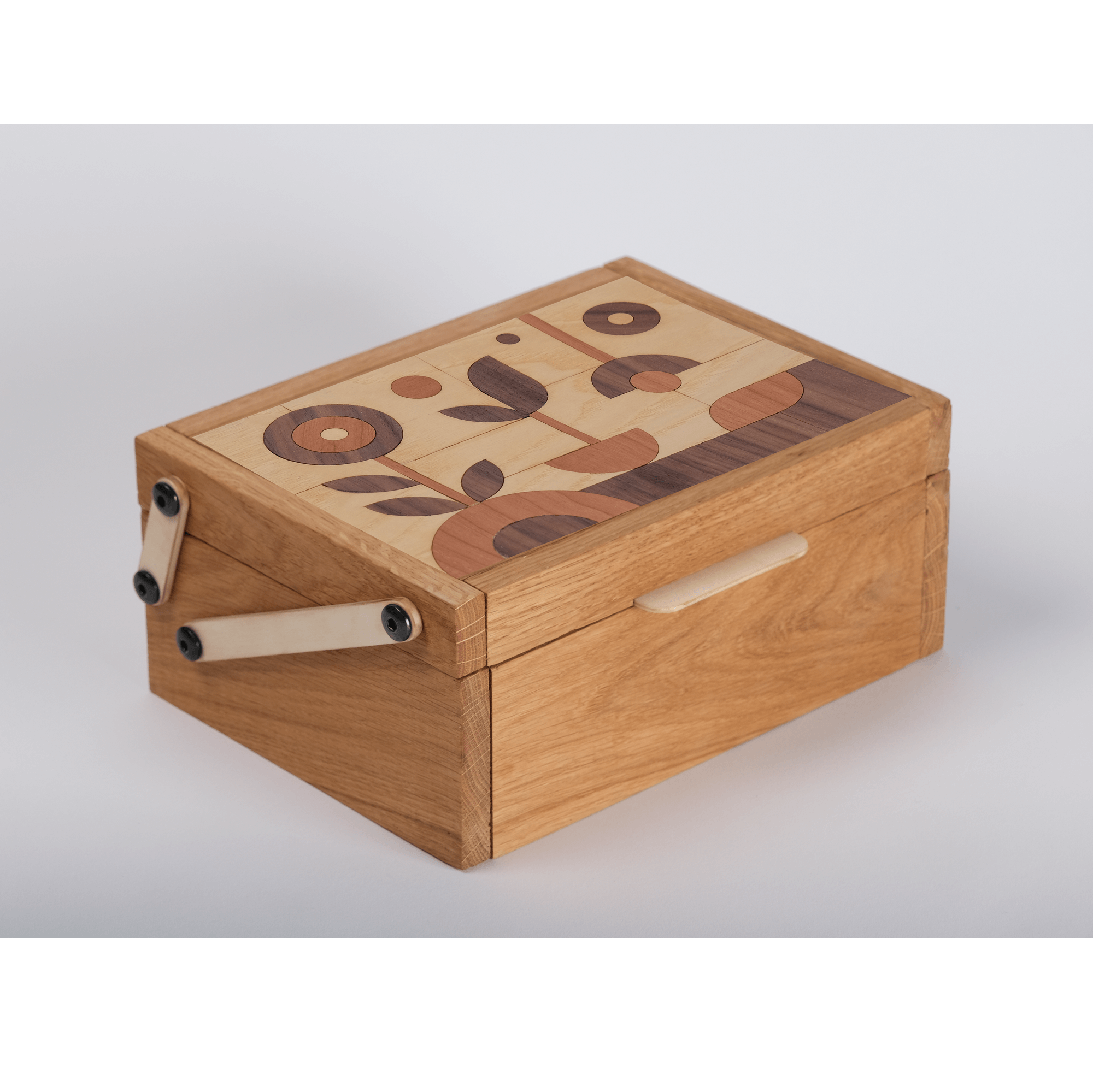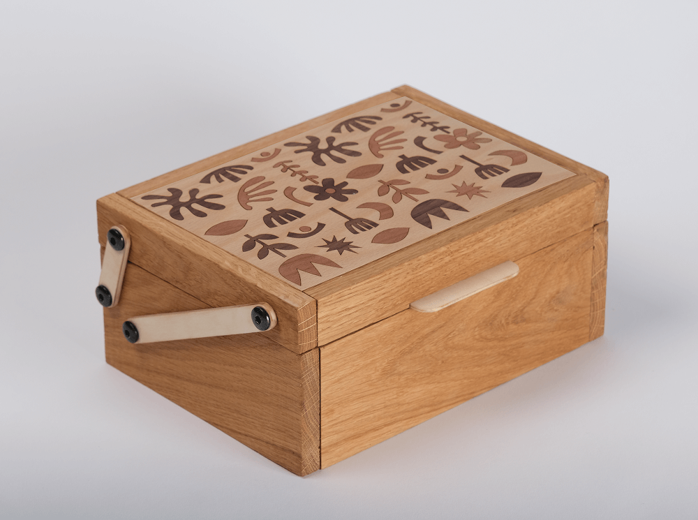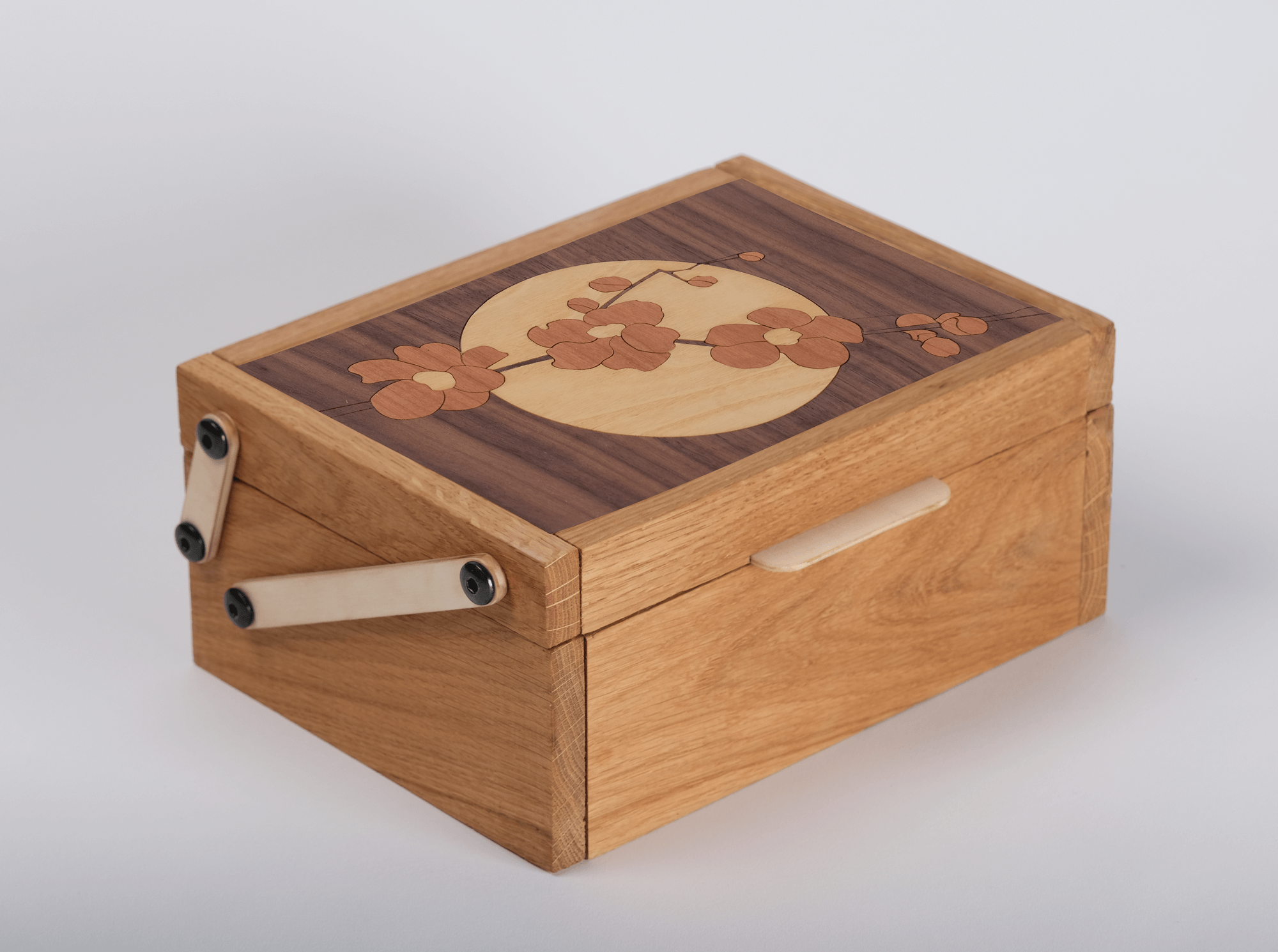 Avec 3 esssences de bois : noyer, merisier et frêne ou chêne sans motif
